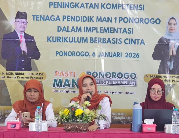Ponorogo, 06 Januari 2026 - Kelompok Kerja Madrasah Aliyah (KKMA) 1 Ponorogo sukses menggelar Bimbingan Teknis (Bimtek) Kurikulum Berbasis Cinta (KBC) pada Selasa, 6 Januari 2026 di Graha Wiyata, aula MAN 1 Ponorogo. Kegiatan dengan tema "Peningkatan Kompetensi Berperspektif Ramah Anak" ini bertujuan meningkatkan kualitas pendidikan dan menciptakan lingkungan madrasah yang lebih kondusif bagi .....